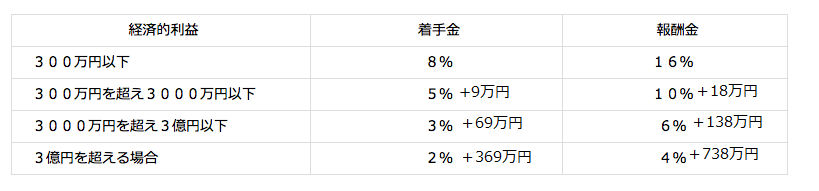 着手金と報酬金(消費税別)